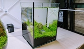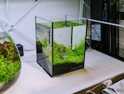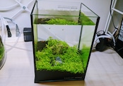 種から育てた、草原をイメージしたミニ水槽のアクアリウム。サイズは15cm x 15cm x 20cm (水量:約3.5L)。